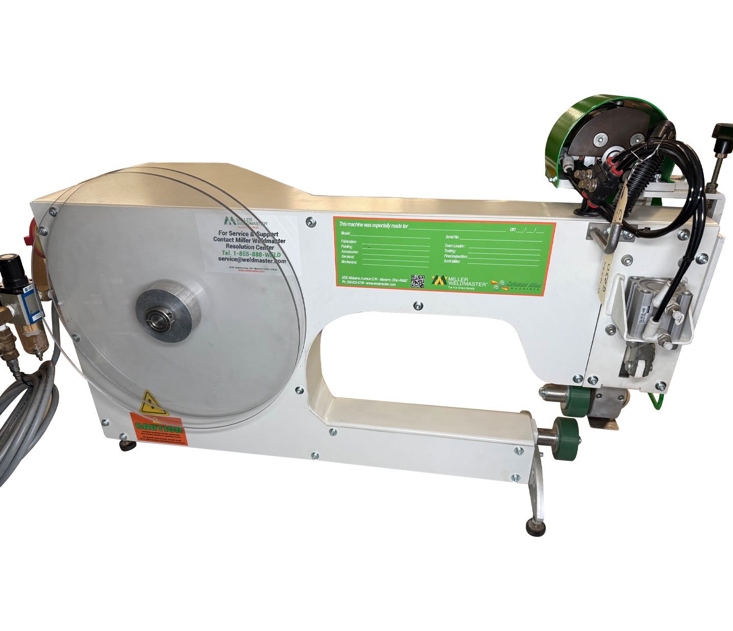 De Miller Weldmaster T100 is gebouwd voor de zwaarste productie-eisen en biedt de veelzijdigheid van een multifunctionele machine voor uw grote producten. De T100 kan stoffen tot 36" breed door de keel voeren zonder te vouwen.